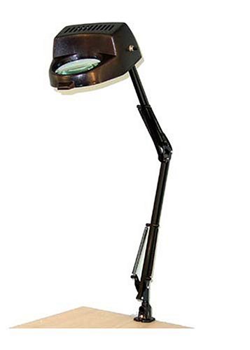 The Grandrich ML-100 Clip-On Magnifier Lamp is the perfect accessory to help illuminate your work on a favorite project or craft. It has 3 diopter lenses which magnify your work area 1.75 times. The large magnifier helps relieve eye strain in fine scale projects including woodworking, tying flies for fishing, sewing, needle point, crochet, machine work, identifying fossils, repairing watches or eye glasses, small electronics, and gun-smithing. The lamp is also perfect for reading the smaller fonts in books, newspapers, or magazines. The lamp uses a standard or compact fluorescent bulb up to 60 watts and can clip on to a workbench, desk, table or any other convenient surface or post. The lamp can be extended up to 32 inches to provide light at the exact location needed for your project.--Bree Norlander