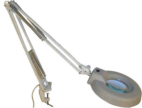 Our heavy duty desk magnifying lamp is great for doing precision work and as a low vision aid. The mounting clamp easily secures the magnifying lamp to the edge of your desk or work table. Spring balanced tension bars allow the lamp to adjust and lock into numerous positions.