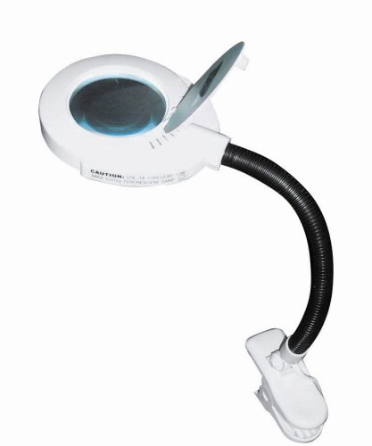 Professional, low heat fluorescent magnifying lamp with 3.5" glass lens. Magnifies objects 1.75x. Supplied with a 12-watt t4 circular fluorescent daylight simulation tube for excellent color matching. Flexible gooseneck arm with clip-on base. Ideal for: dental lab, hobbyist, craftsmen, professionals and more.